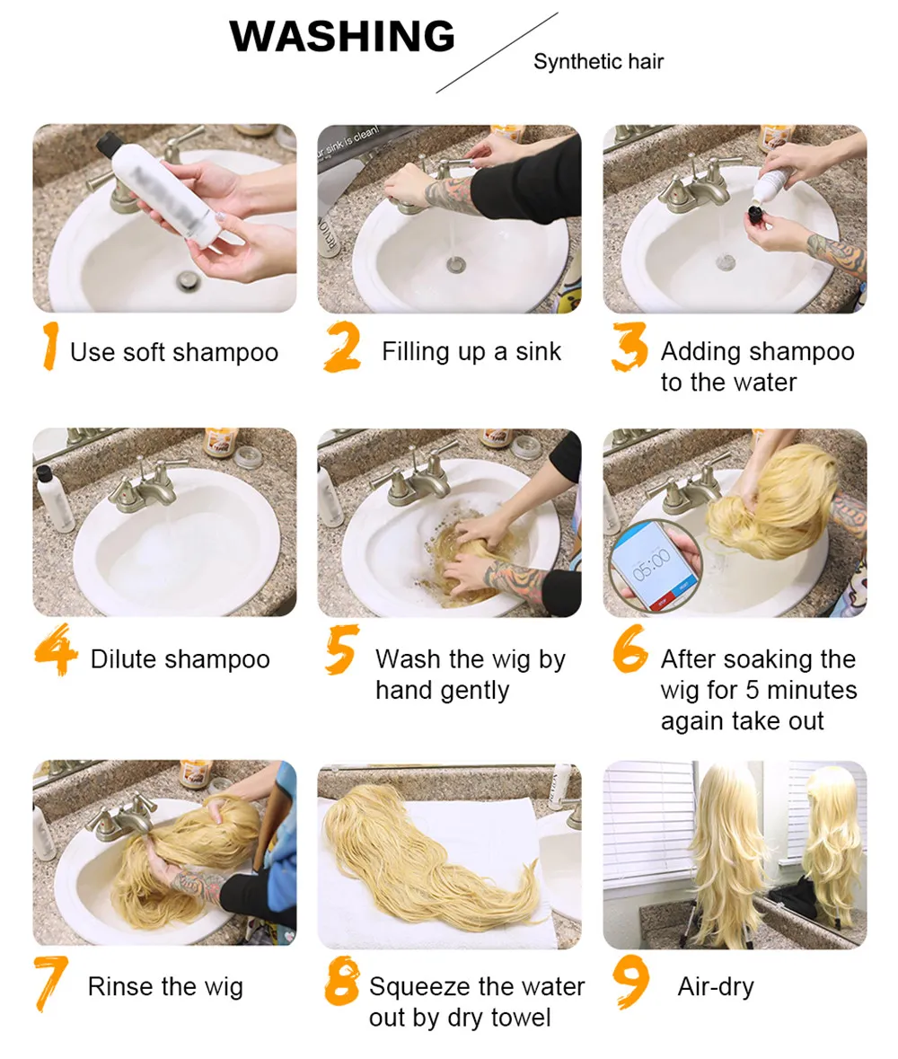Emmor Orange Yellow Synthetic Hair Wigs Long Wavy Wigs For Women Cosplay Daily Use Party High Temperature Resistance Fiber